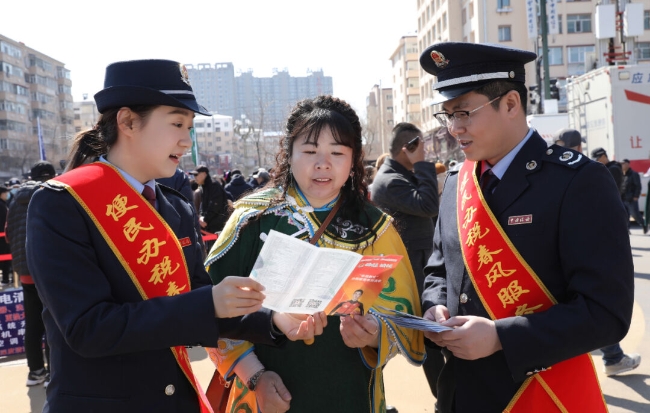 松花江冰层的初融碰撞出春的希望,赫哲文化与非遗+的民俗元素叠加释放,11194名市民群众齐声高歌《喊江》创下了“最多人参与的电台直播合唱”的吉尼斯世界纪录。4月9日,佳木斯市首届“喊江节”在市外滩公园激情启幕。佳木斯市税务局以第33个全国税收宣传月为契机,组成税费政策宣讲服务团队走进活动现场,向布设摊位的商家开展政策宣讲,向市民游客宣传介绍原创纳税服务品牌,以“税惠”春风增色赋能地方文化节日。
