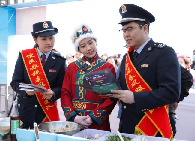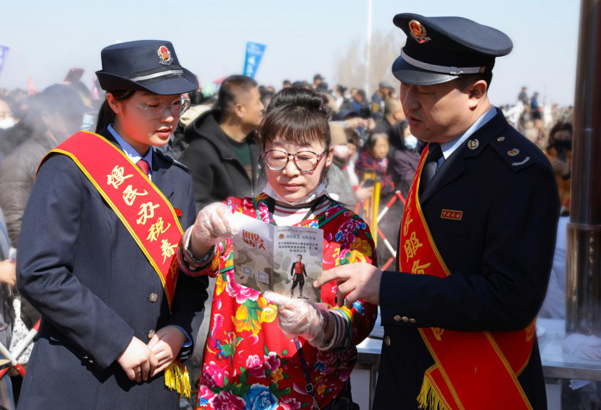 松花江冰层的初融碰撞出春的希望,赫哲文化与非遗+的民俗元素叠加释放,11194名市民群众齐声高歌《喊江》创下了“最多人参与的电台直播合唱”的吉尼斯世界纪录。4月9日,佳木斯市首届“喊江节”在市外滩公园激情启幕。佳木斯市税务局以第33个全国税收宣传月为契机,组成税费政策宣讲服务团队走进活动现场,向布设摊位的商家开展政策宣讲,向市民游客宣传介绍原创纳税服务品牌,以“税惠”春风增色赋能地方文化节日。