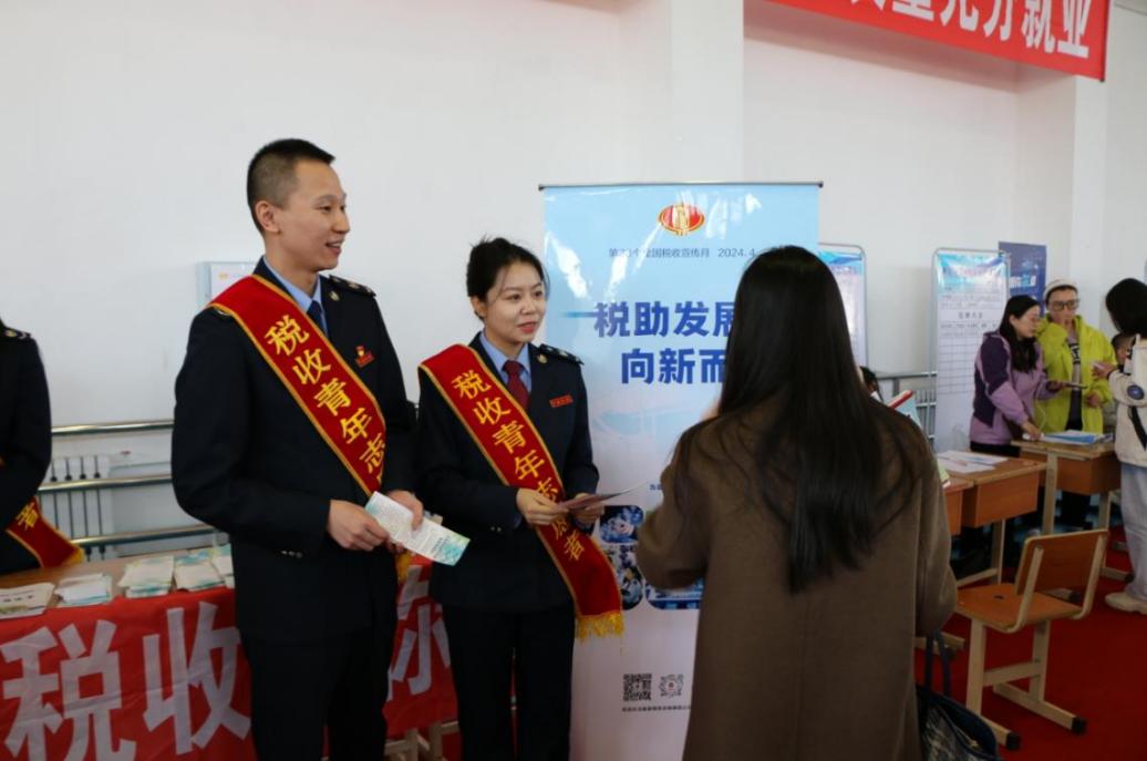 为进一步深化“税校”合作,培养高水平高素质高活力创业就业青年人才,让税惠春风温暖冰城高校“毕业季”,哈尔滨市松北区税务局以第33个全国税收宣传月为契机,紧扣“税助发展 向新而进”主题,走进黑龙江工商学院,受邀参加“供需适配强服务·春季攻坚促就业”黑龙江省民办高校就业协作体联合招聘会,针对大学生群体和现场招聘企业开展税收服务和政策宣传活动,靠前服务,精准谋划,为高校毕业生就业创业“输血供养”提供税收支持。