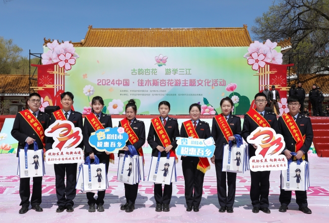 沾衣欲湿杏花雨,吹面不含杨柳风。4月28日,以“古韵杏花 游学三江”为主题的2024佳木斯市杏花游主题文化活动开幕。国家税务总局佳木斯市税务局的税收宣传服务团队结合第33个全国税收宣传月活动,打卡文化活动现场,为市民游客和参展企业奉上一份精心制作“税费优惠政策和税法知识”套餐,并赠送税收文创产品。