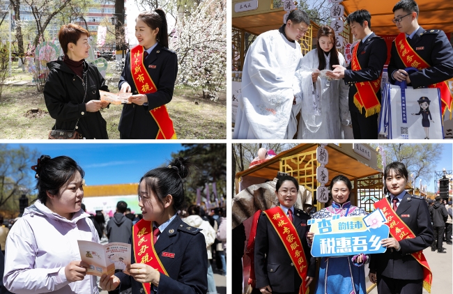 在“古韵杏花 游学三江”主题活动现场,佳木斯市税务局的干部通过“定点+流动”的方式向前来参加活动的游客市民详细讲解介绍城乡居民养老保险、个人所得税专项附加扣除等群众关心关注的热点涉税问题,对“黑龙江省电子税务局”“城乡医疗养老保险”“预约办税”等平台进行“手把手”操作辅导,同时积极推广介绍税收工作近年来取得的新成就和优化办税缴费方式取得的新突破,积极传递依法诚信纳税和纳税光荣理念。