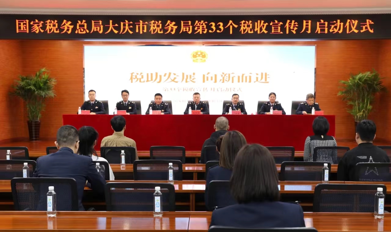 大庆市税务局在局机关举行第33个税收宣传月启动仪式。税收宣传月期间,大庆市税务局将围绕“税助发展向新而进”这一税收宣传月主题,聚焦“高效办成一件事”、“税路通·龙行万里”服务品牌建设、税收法治教育等工作开展一系列形式多样的税收宣传活动,为更好支持和服务大庆培育发展新质生产力,推动大庆经济高质量发展营造良好的环境和氛围。