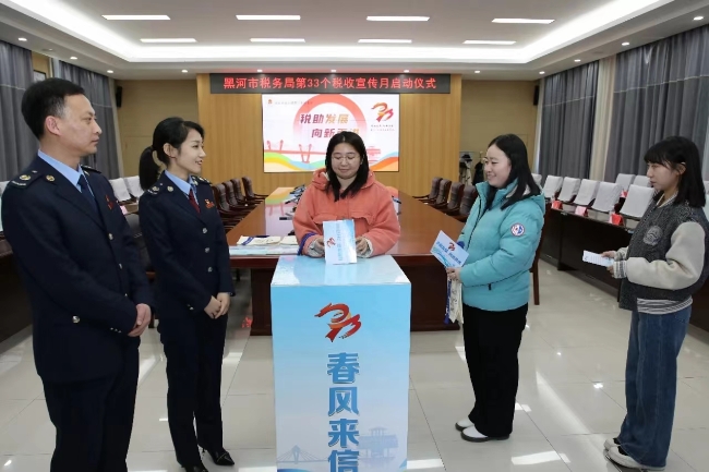 黑河市税务局邀请市财政局、纳税人缴费人及媒体代表共同启动第33个全国税收宣传月。活动中,市税务局业务骨干讲解了税费政策。活动现场特别设置了“春风回信”环节,对部分企业代表提出的问题进行了解答,纳税人缴费人还现场写下问题建议投入“春风信箱”,税务干部逐一回复,第一时间对纳税人缴费人的诉求和意见给予反馈。