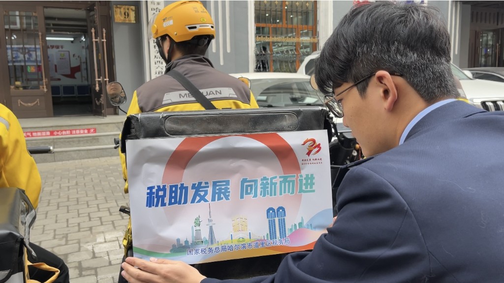 据了解,为进一步扩大税收宣传覆盖面,提高群众知晓度,哈尔滨市道里区税务局发挥美团骑手资源优势,与辖区驻点驿站联动开展税收宣传活动。