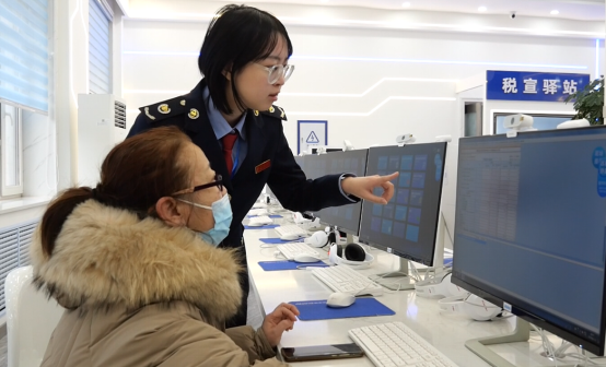 (税务干部辅导年龄偏大的纳税人使用电子税务局办税)