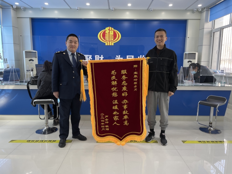 近日,汤原县的芦先生向萝北县税务局宝泉岭税务分局送来一面写着“服务态度好,办事效率高,为民解忧愁,温暖如家人。”的锦旗,表达了纳税人对萝北税务部门高效贴心服的真诚感谢。