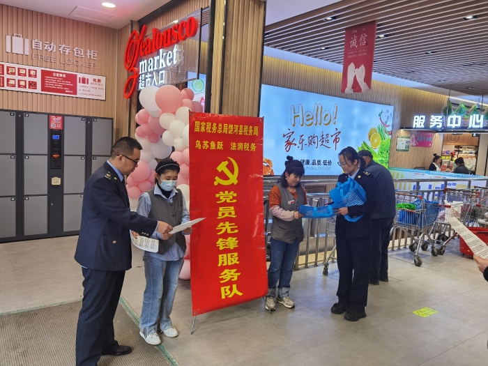 活动中,党员先锋服务队志愿者,向商户和群众发放便民办税春风行动宣传单和税费优惠政策宣传册、张贴双鸭山市税务局推出税费业务高效办“十大举措”,针对“非接触式”办税、容缺办理、承诺制等多项涉税业务进行宣传。在精准推送辅导政策的同时,还向超市相关人员问需,倾听纳税人缴费人声音,精准回应解决诉求。