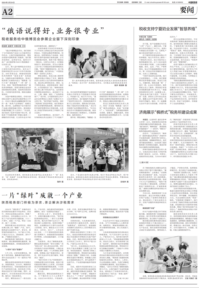 这样的感受不仅来自外国客商,不少中国本土参展企业代表也有同样的体会。中国铝业集团带着铝锭、铝基合金、铝箔等特色产品参展,其铝制汽车部件受到俄方客商追捧,公司有意到俄方投资。税务干部了解到这一情况后,立即为公司送上《对俄投资指引》等宣传资料,并为公司财务人员介绍了对俄投资经营的纳税相关问题。“税务干部解答很详尽,给了我们很多提醒,他们很专业。”中国铝业集团一名财务人员表示。