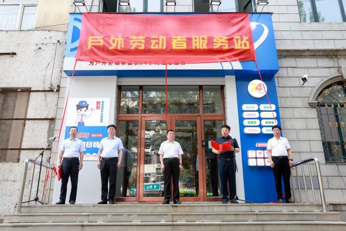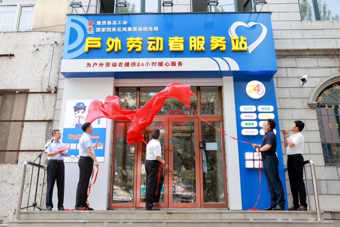 市人大常委会党组副书记、副主任,市总工会党组书记、主席于世军,市税务局党委书记、局长李剑波,集贤县委常委、副县长王斌为户外劳动者驿站揭牌
