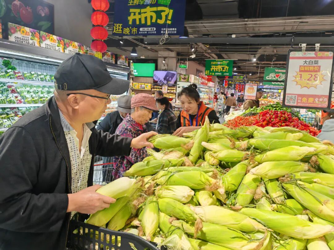 消费者在超市挑选蔬菜。刘玉梅/摄