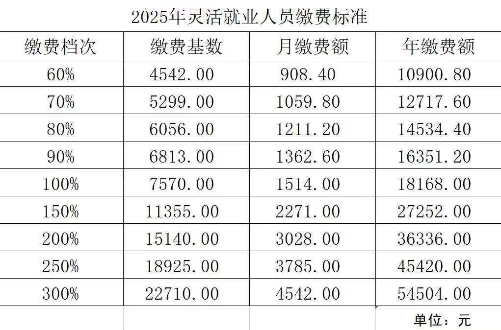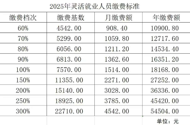 2025年灵活就业人员养老保险缴费标准