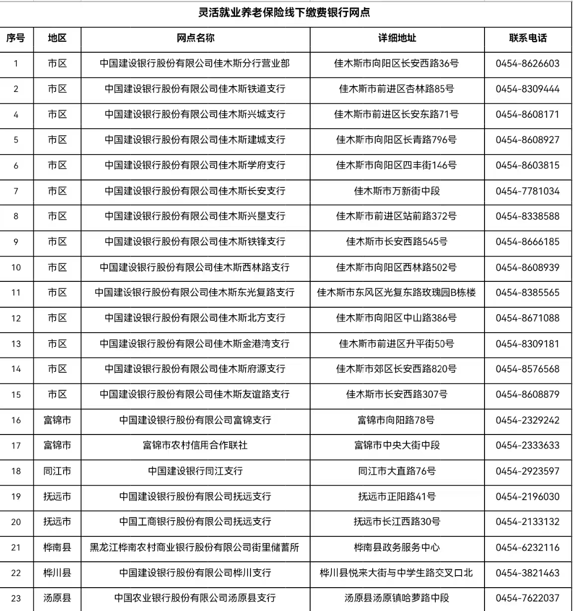2.银行批扣:已与银行签订代扣协议且一直采取批扣方式成功缴费的参保人,请确保2025年当地最后一次批扣前,签约银行卡中存足缴费金额,并及时关注扣款情况(市区、桦南、汤原最后一次批扣时间为12月15日,富锦、同江最后一次批扣时间为12月19日,抚远最后一次批扣时间为12月10日)。如未能成功扣款,请务必于12月25日前通过其他缴费渠道自主申报缴费。