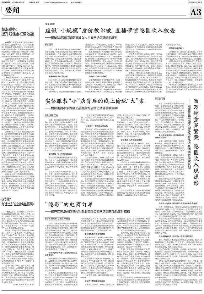 2024年初,哈尔滨市税务局稽查局接到举报线索,反映“哈尔滨红博商贸城女人世界”通过其在某网络平台注册的网络店铺直播销售女装,存在未如实申报收入、未足额缴纳税款的情况。
