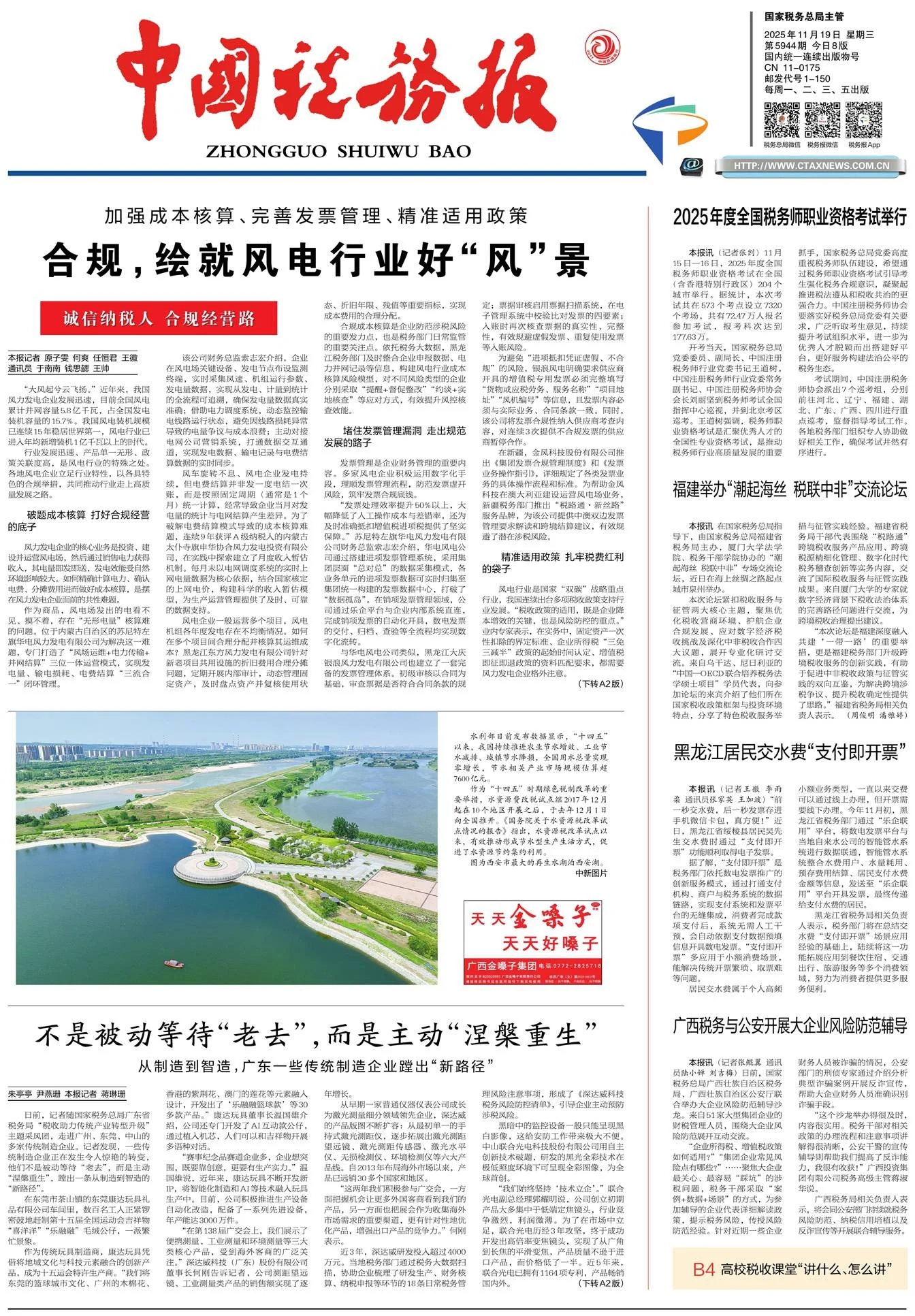 发布时间:2025-11-30 09:45 信息来源:中国税务报 字号:[] [] []