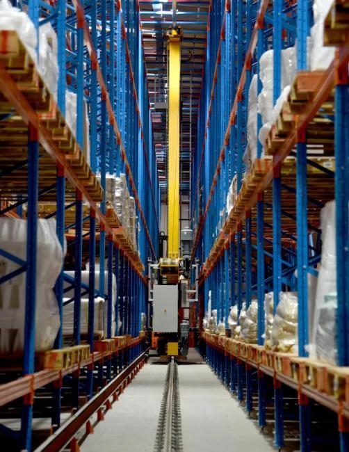 厦门通士达照明有限公司智能仓库在自动装卸货物。