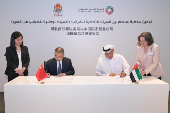 在参加税收征管论坛(FTA)大会后,中国税务代表团赴阿联酋开展访问。胡静林与阿联酋联邦税务局局长哈立德·阿尔布斯塔尼就税收征管数字化转型、优化纳税服务及深化双边合作等议题展开务实沟通,并共同签署《中华人民共和国国家税务总局与阿拉伯联合酋长国联邦税务局双边税务合作谅解备忘录》。访问期间,中国税务代表团还在迪拜召开部分驻阿中资企业座谈会并实地调研走访,介绍中国税务部门服务“走出去”企业的系列措施,听取意见建议,并解答企业关心的涉税问题,助力驻阿中资企业更好防范跨境税收风险,实现高质量发展。 |