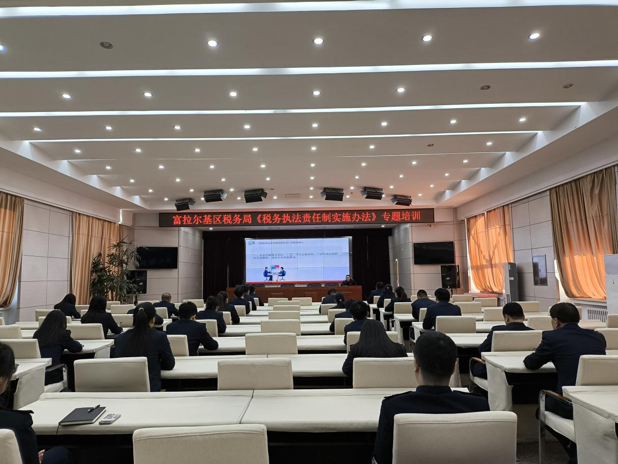 税务总局研究制定的《税务执法责任制实施办法》将于2025年3月1日开始施行。为了进一步落实行政执法责任制,着力强化依法治税、以数治税、从严治税,促进税务执法人员规范履责、担当作为,2月26日,国家税务总局齐齐哈尔市富拉尔基区税务局组织开展了《税务执法责任制实施办法》专题培训。