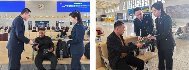 4月15日,集贤县局第一税务分局联合党委纪检组走进双鸭山高铁站开展税法宣传活动。为了让税法知识更易理解,税务干部结合生活实例,深入浅出地讲解个人所得税相关要点,如专项扣除如何填报、汇算清缴怎么操作等。一位马上退休的老同志看到税务干部,直接现场询问60岁开工资怎么补缴养老保险,第一税务分局翟振远同志当场帮助老人用手机操作缴费,老人十分感激!