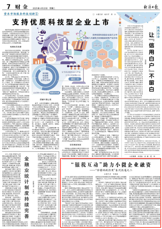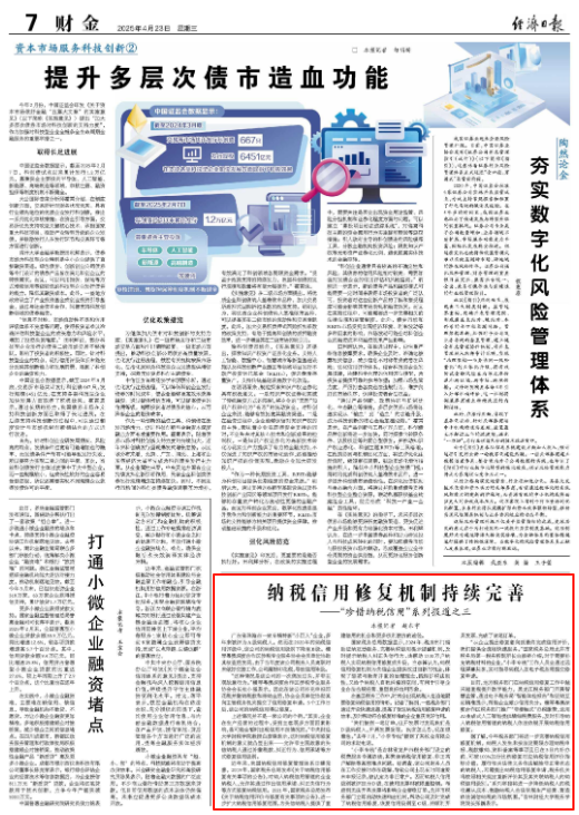 在融资主体角度,良好的纳税信用可以成为小微企业获取金融资源的重要依据,这有助于解决小微企业因缺乏抵押物而面临的融资难题,使更多小微企业能够获得金融支持。同时,纳税信用为普惠金融体系提供了一个相对客观、公平的信用评价标准,金融机构的评价标准不再局限于企业规模大小,而是拓展到纳税信用层面。这有助于促进金融市场的公平竞争,使小微企业在金融资源分配中能够获得更公平的机会,激发小微企业的市场活力和创新精神。(记者 勾明扬)