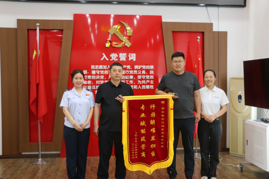 在一系列贴心服务下,飞鹤乳业切实感受到了税务部门的高效与专业。为表达感激之情,飞鹤乳业特地向泰来县税务局送来锦旗,锦旗上“纾困解难显担当,专业赋能筑营商”的字样,不仅是对税务工作的高度认可,更是激励税务部门不断前行的动力。