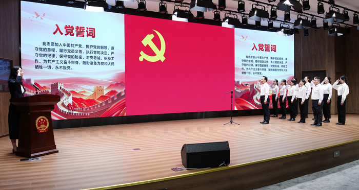 “我志愿加入中国共产党,拥护党的纲领,遵守党的章程……”随后,在税务总局党委委员、副局长蔡自力带领下,税务总局机关10名新发展党员整齐列队,面向党旗庄严宣誓,表达了听党话、感党恩、跟党走的坚定信念,有力展现了锐意进取、兴税强国的精神风貌。