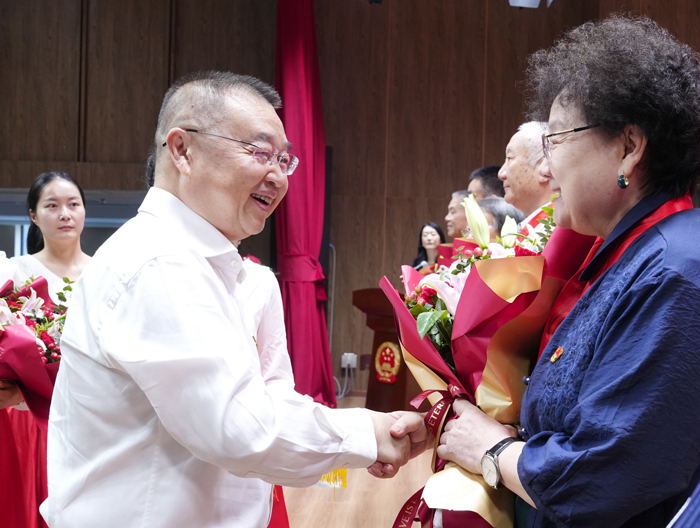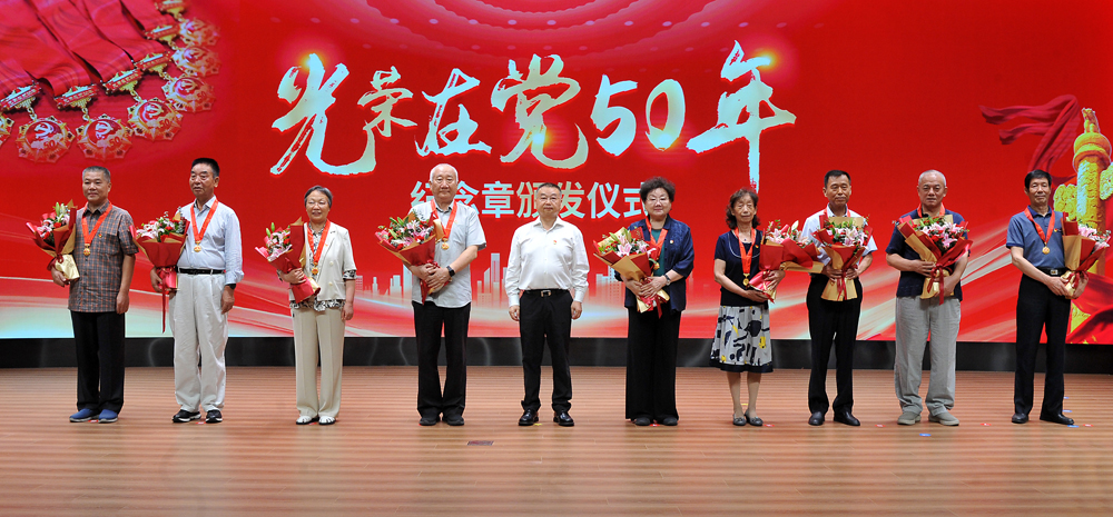 上午9时,活动正式开始,全体人员起立,齐唱中华人民共和国国歌。自2021年以来,按照党中央的统一部署,税务总局机关共为符合条件的97名老党员颁发了“光荣在党50年”纪念章,其中今年获此殊荣的有11名。在热烈的掌声中,前来领受纪念章的老党员依次登台,由胡静林为他们佩戴纪念章并表示问候。老党员代表侣海林在发言中深情回顾了与党同行50年,用实际行动践行入党誓词、诠释初心使命的奋斗岁月,真诚表达了遵规守纪、严以律己,一辈子忠诚于党的深厚情怀,表示将持续发扬党的光荣传统和优良作风,继续为税收事业发挥余热、贡献力量。
