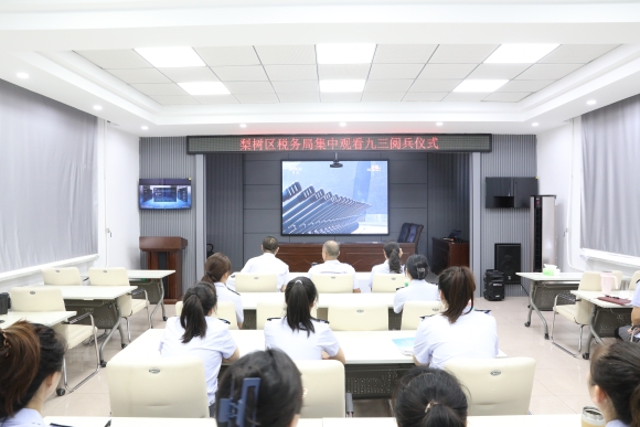 9月3日上午,梨树区税务局会议室内气氛庄重热烈,全体税务干部怀着无比激动的心情早早整齐就坐,等待观看纪念中国人民抗日战争暨世界反法西斯战争胜利80周年阅兵仪式现场直播。
