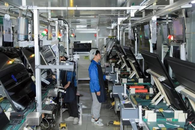 冠捷显示科技(厦门)有限公司的工作人员正在对液晶电视接口功能及画质进行测试。