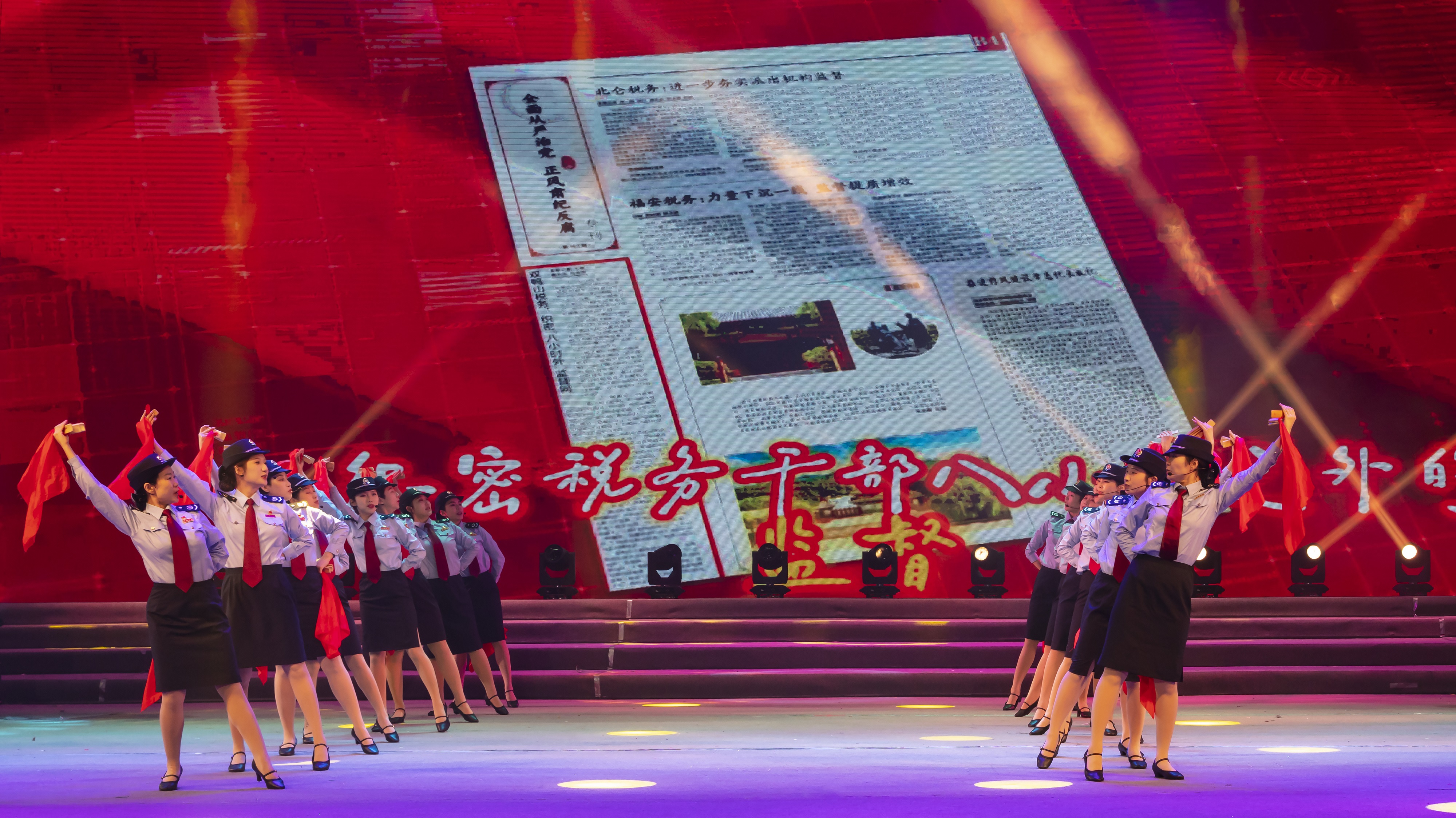 在市局党委的大力支持和市局主要领导的关心指导下,我局精心组织、积极筹备,选送的舞蹈快板《清风双税润山城》顺利入围。凭借鲜明的主题、精湛的表演,生动展现了双鸭山市税务系统党员干部崇廉尚洁、实干笃行的良好精神风貌,充分彰显了双鸭山税务人为国聚财、为民收税的担当,以及“清风双税”守护经济血脉纯洁的坚定承诺,得到了展演活动主办方、承办方和观看展演观众的普遍赞誉。