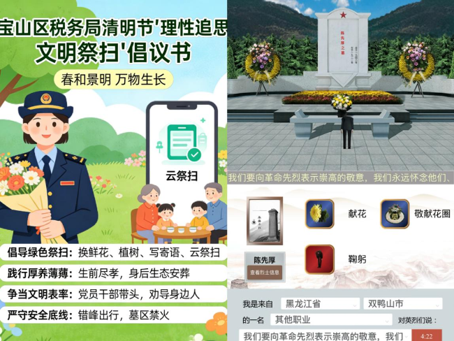 云端追思传温情,文明祭祀树新风。区局同步发起“理性追思 文明祭扫”倡议,倡导干部摒弃焚烧纸钱等旧习,采用鲜花祭扫、云端追思等低碳方式寄托思念,让厚养薄葬理念深入人心。同时组织线上祭扫活动,干部们轻点屏幕完成“云祭扫”,撰写寄语、敬献虚拟鲜花,在家庭追思中传承家风,让文明祭扫成为清明新风尚。