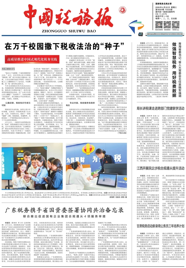 “带着问题来,拿着答案走。”各地税务部门在校园里举办的每一次税收宣传活动,积极以专业对接回应多元需求,努力让法治服务陪伴好青年人、职场人成长的每一步。