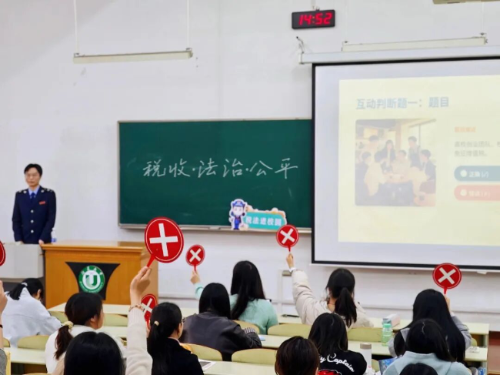 在江苏,镇江市京口区税务局走进江苏大学,开展“法治税课堂·合规我来判”主题活动。活动聚焦大学生身边的高频涉税场景,以“合规判案”方式引导大学生参与互动,让普法宣传以更接地气的方式来到大学生身边。