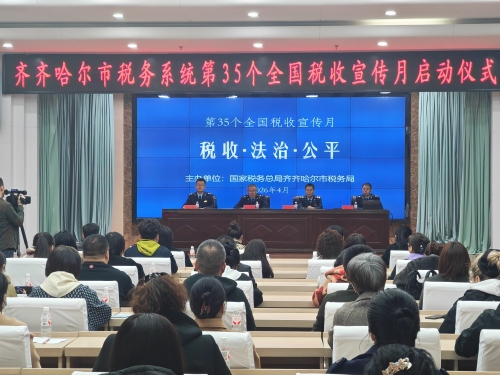 4月1日,齐齐哈尔市税务局举办以“税收•法治•公平”为主题的第35个全国税收宣传月启动仪式。齐齐哈尔市融媒体中心、齐齐哈尔日报等媒体记者及各行业纳税人代表现场参与活动。